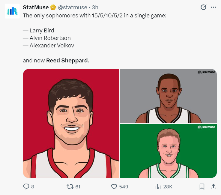 3.谢泼德拿到生涯首次两双;